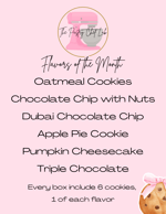 Si creías que ya habías probado “la mejor galleta”… espera a morder una New York Style. Crujientes por fuera, suaves por dentro y enormes como tu antojo. ¡Una galleta que vale por dos! Nuestras New York Style Cookies están listas para endulzar tu día. Hechas a mano, 4 onzas de puro sabor, con trozos enormes de chocolate y mucho amor en cada bocado. No envíos, solo recogido o entrega (tiene costo adicional). Orden minima de 6 galletas. Escoge entre los sabores del mes.